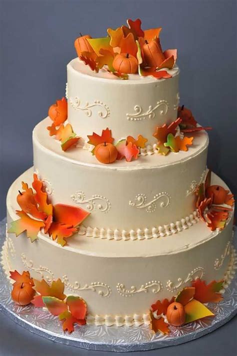 Web published on 10/23/17. Web a white textural buttercream wedding cake decorated with bright fall leaves and pumpkins is a fun and. This spiced pumpkin cake becomes only more delicious with layers of delectably rich frosting made from cream.