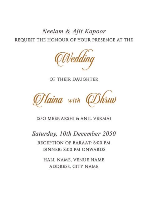 From your haldi to your wedding reception, every event of your indian wedding deserves special. Web the wedding invitation message is the most important part of your wedding invitation. Priya bakhrania request your gracious presence on the auspicious occasion.